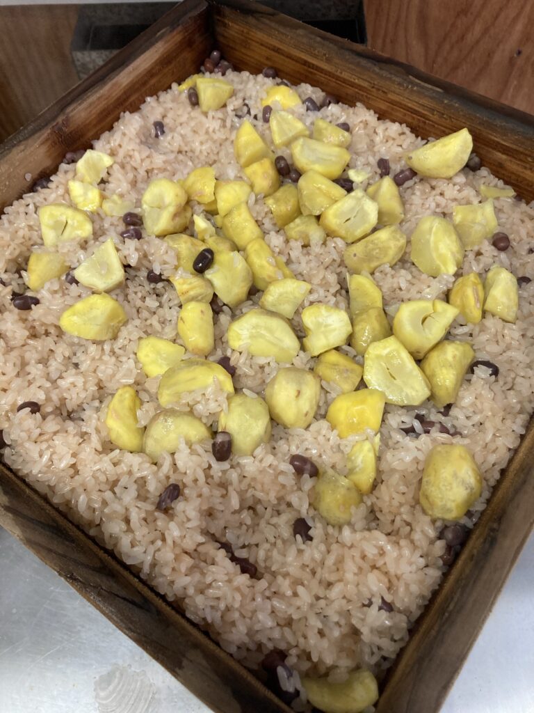 入駒では秋のメニューとして、栗赤飯を作っております。